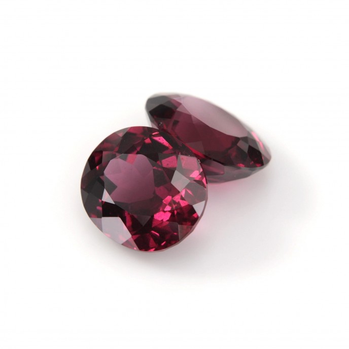 Rhodolites are a combination of Pyrope and almandine garnet varieties. The Almandine is Iron rich and appears in red tones and the Pyrope is iron and chromium rich deep red like Ruby. The rhodolite garnets are not known to be enhanced. The hardness is 7 to 7.5. The specific Gravity is 3.84 and the refractive Index is 1.760. Rhodolite was believed to improve eye sight and a piece of rhodolite was placed on the eye and also cleared heart diseases. Rhodolite beads where used in meditation which strengthens the chakras.